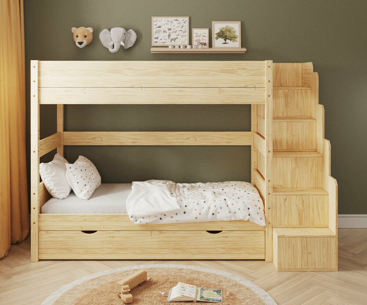 Un design fonctionnel pour vos bambins, le lit gain de place en bois massif par excellence !