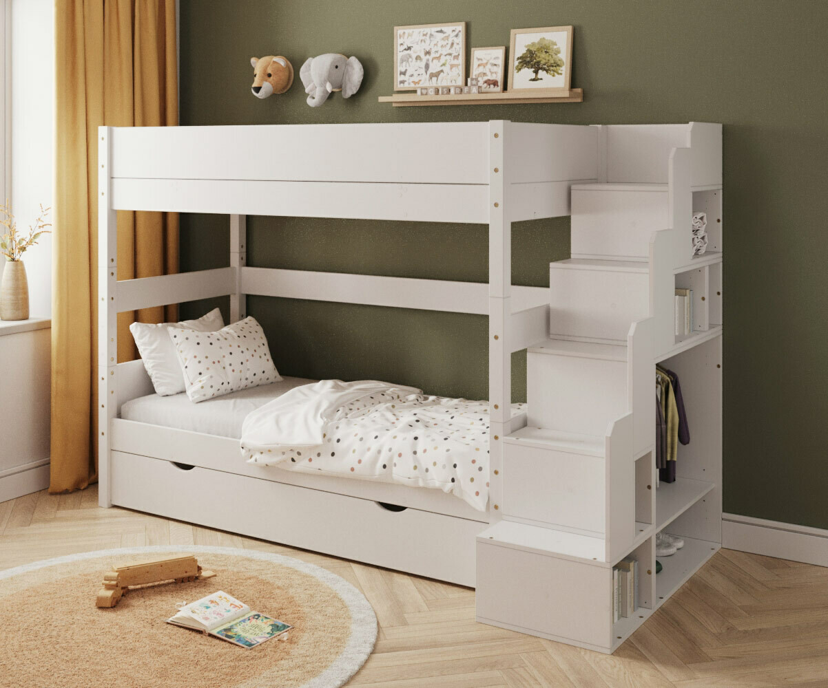 Coloris disponibles : Lit superposé haut enfant avec escalier et sommier gigogne - Combeebed