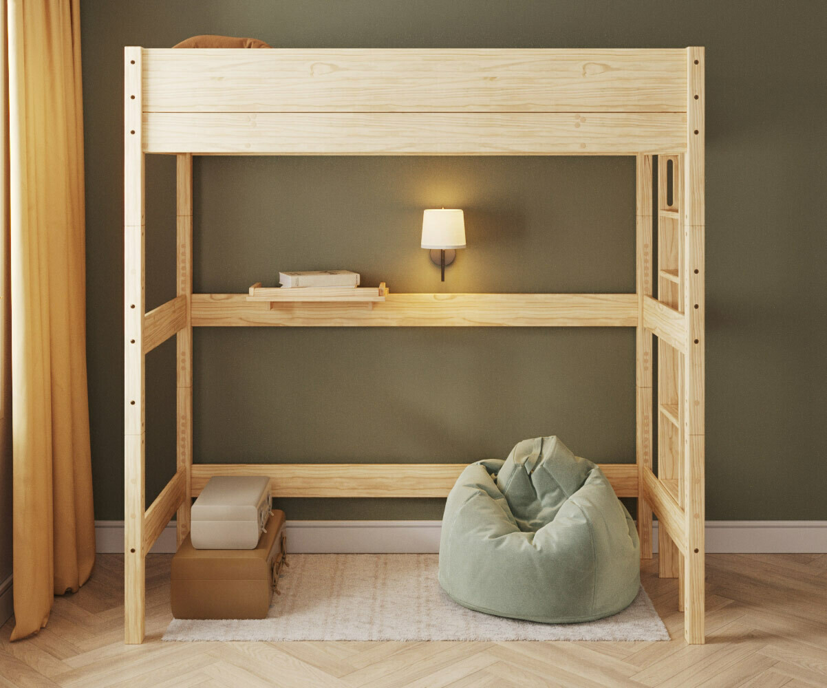 Offrez à votre enfant un espace nuit unique avec notre lit mezzanine XL Combeebed ! Conçu dans nos bureaux de Saintes et fabriqué en pin massif par notre usine partenaire, ce lit surélevé allie parfaitement sécurité et gain de place. Sa hauteur généreuse de 2m185 libère un espace de jeu ou de travail considérable sous le couchage, pour une chambre d'enfant optimisée et fonctionnelle.