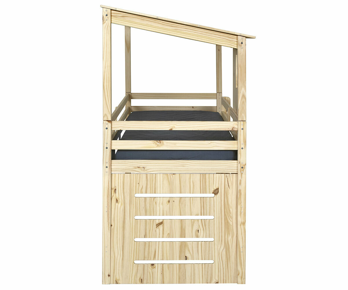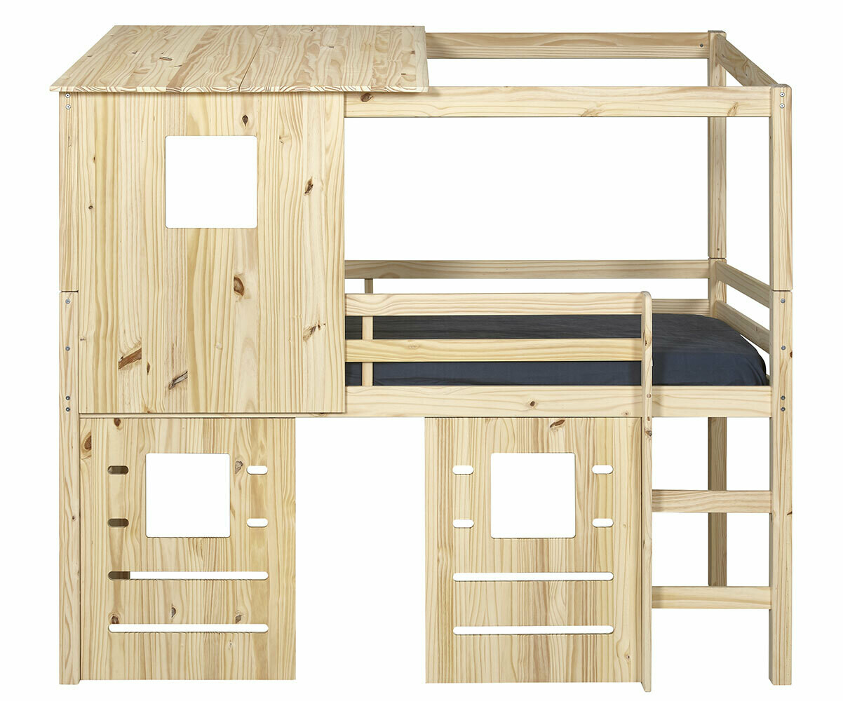 Lit enfant cabane mi-hauteur 100% pin massif, 2 coloris disponibles