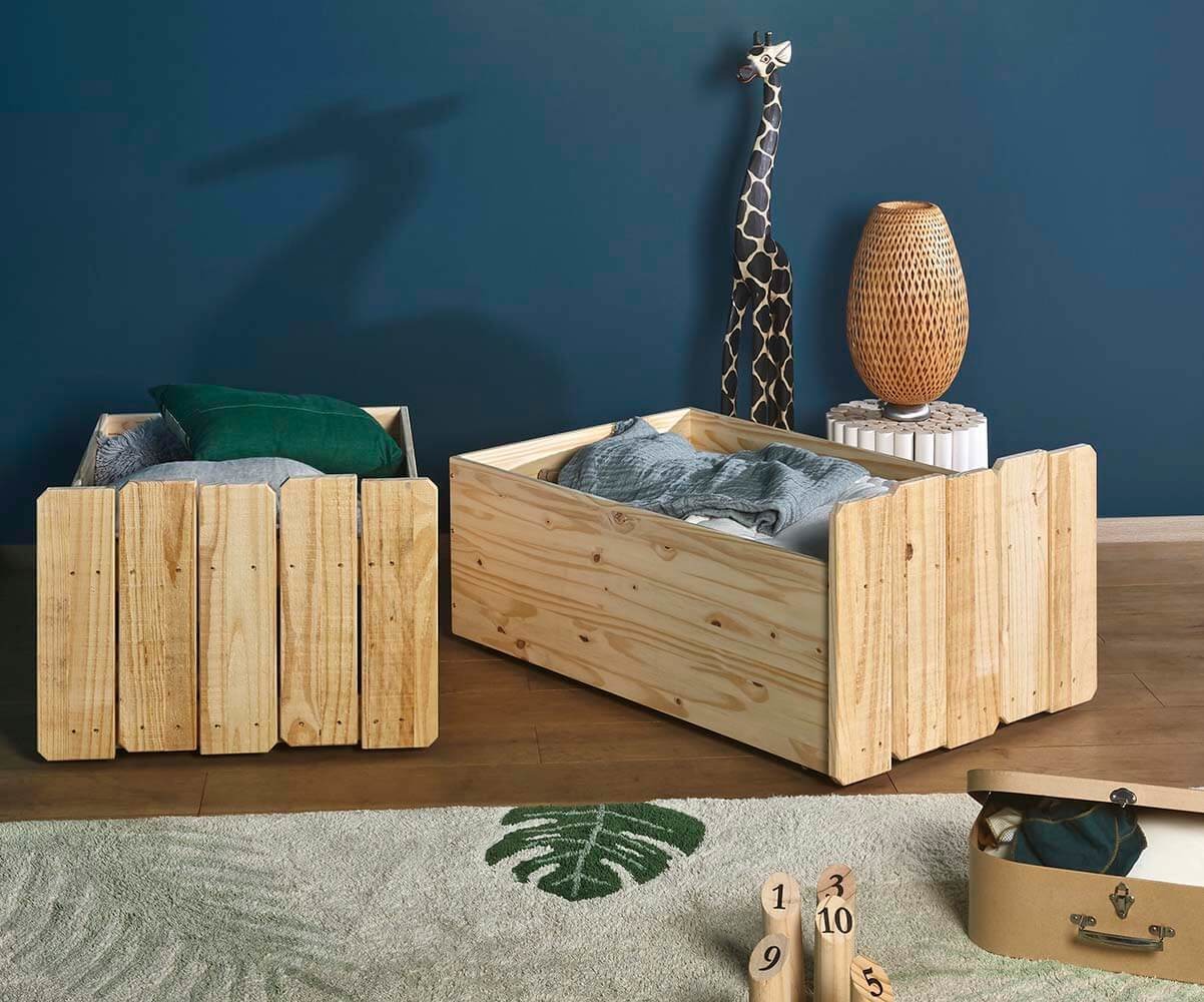 Présenté sous forme de “caissettes en bois”, le lot de 2 tiroirs dispose d’un design moderne et original. Munis de roulettes, les tiroirs sont facilement manipulables et peuvent aussi être facilement déplacés. Ainsi, vous pouvez facilement moduler la chambre de votre enfant et l’aménager en fonction de vos besoins.