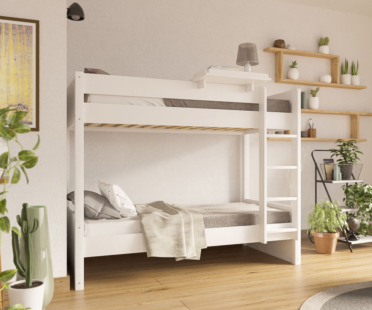 La chambre de votre enfant est un peu exiguë ? Grâce à cette table de chevet, vous pouvez lui offrir tout ce dont il a besoin, sans envahir son espace. La table de nuit enfant Gana se fixe sur la barre anti-chute du lit avec des fixations fournies. Ce chevet étagère est compatible avec tous nos modèles de lit en bois massif.