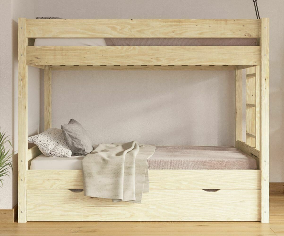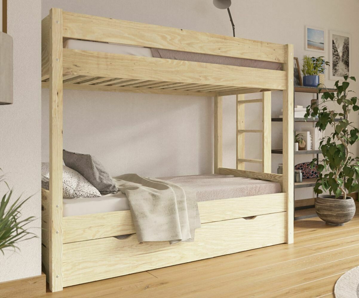 Lit superposé ado triple en bois massif avec sommier gigogne