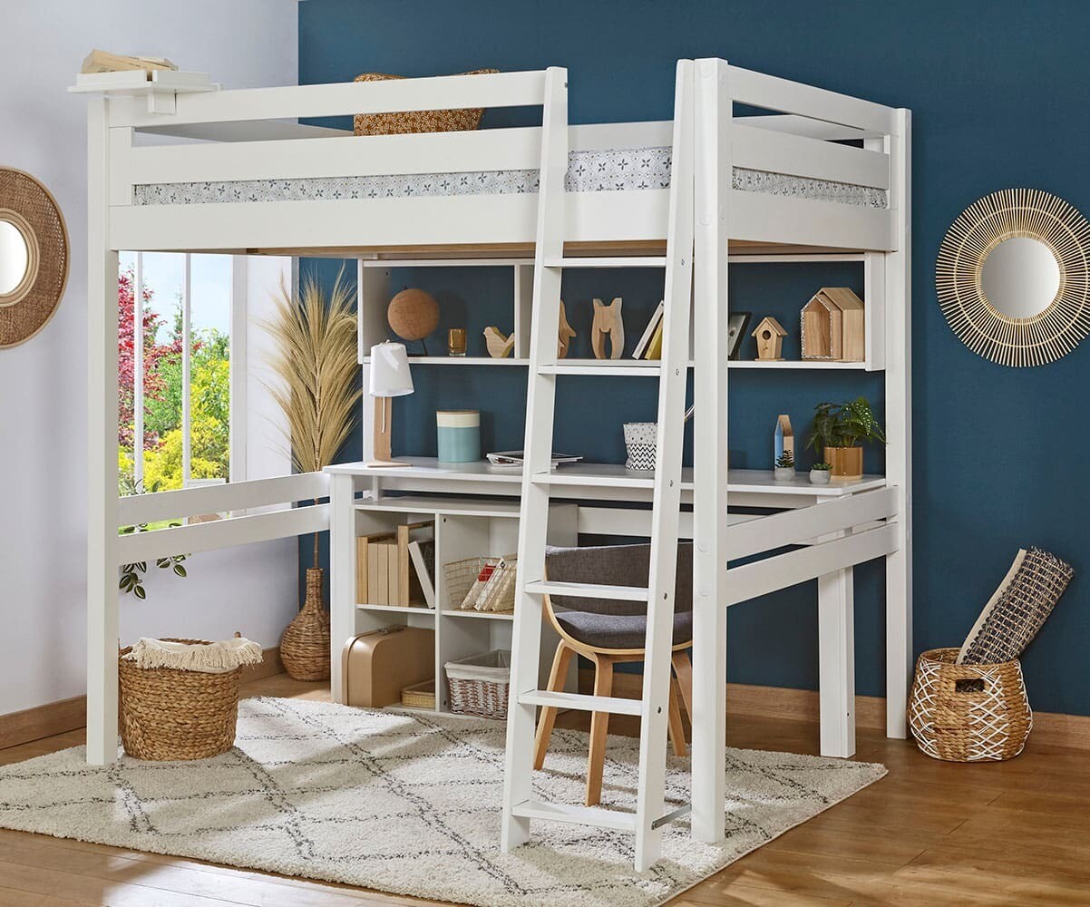 Votre adolescent a tendance à beaucoup bouger durant son sommeil ? Offrez-lui un lit spacieux 2 places pour qu’il se sente bien à l’aise. Notre lit mezzanine ado 2 places Fynn lui procure en plus du confort, un réel gain de place dans sa chambre.