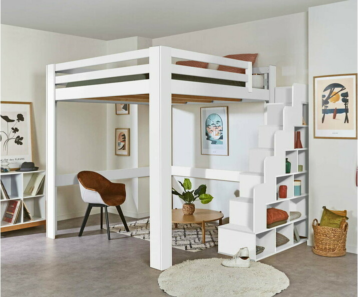 Un lit en hauteur ado avec escalier en bois massif robuste et durable