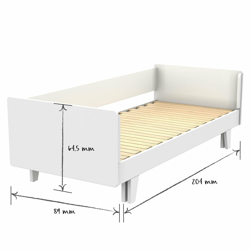 Cet astucieux lit qui se déplie peut supporter un poids de 90 kg une fois la literie pliée et un poids de 130 kg lorsque le couchage est déplié. À noter que débattement des lattes est nécessaire à l'ouverture du matelas. La barrière arrière de ce lit 2 en 1 est amovible.