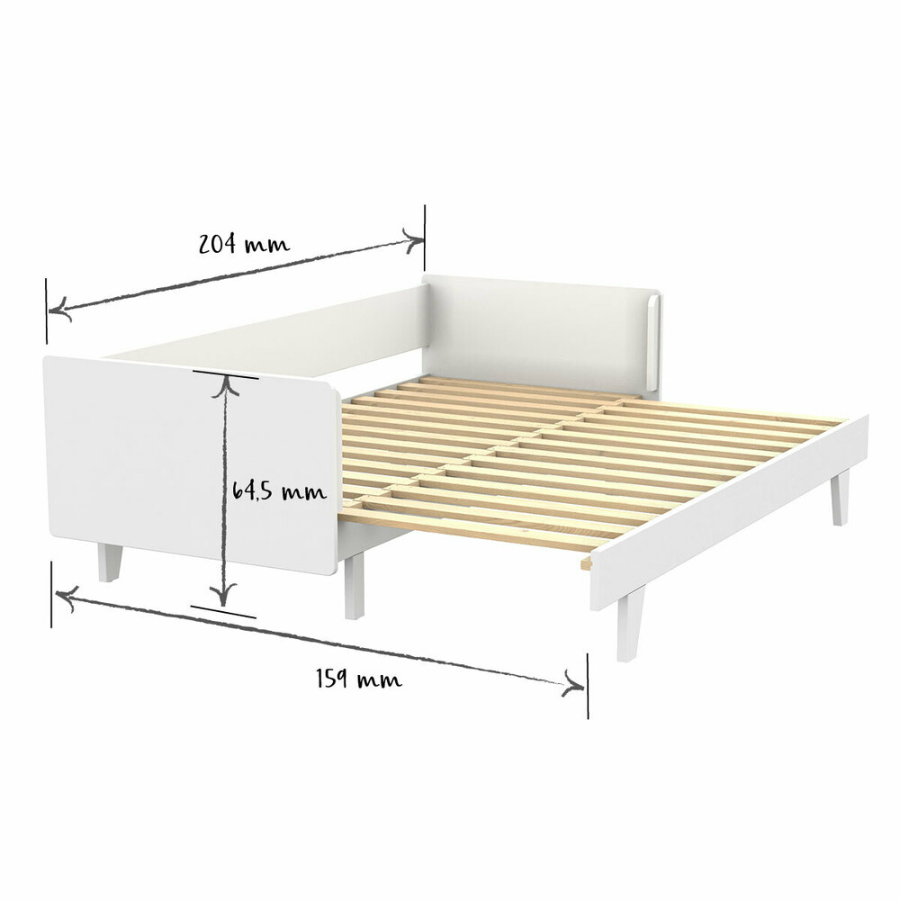 Le lit 2 en 1 Roni est un canapé gigogne plein de ressources. Grâce à son sommier coulissant de type peigne, il passe d’un lit simple de 80 x 200 à un lit double de 160 x 200 en un clin d’œil. Vous bénéficiez ainsi d’un grand couchage double pour dormir à votre aise la nuit.