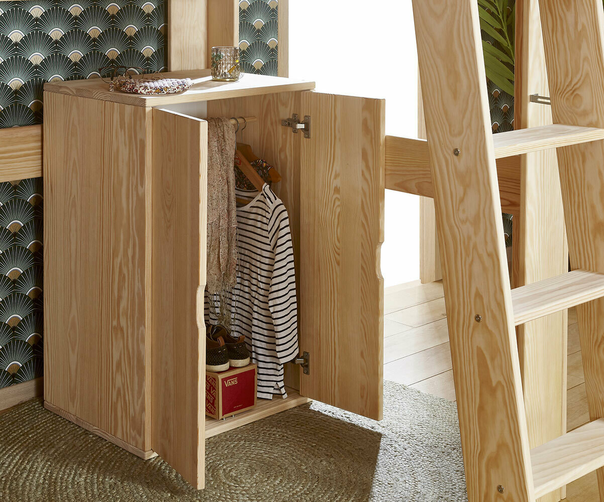 Vous pouvez placer le module en dessous d’un lit mezzanine Naolo pour un gain de place conséquent ou indépendamment du lit, contre un mur.