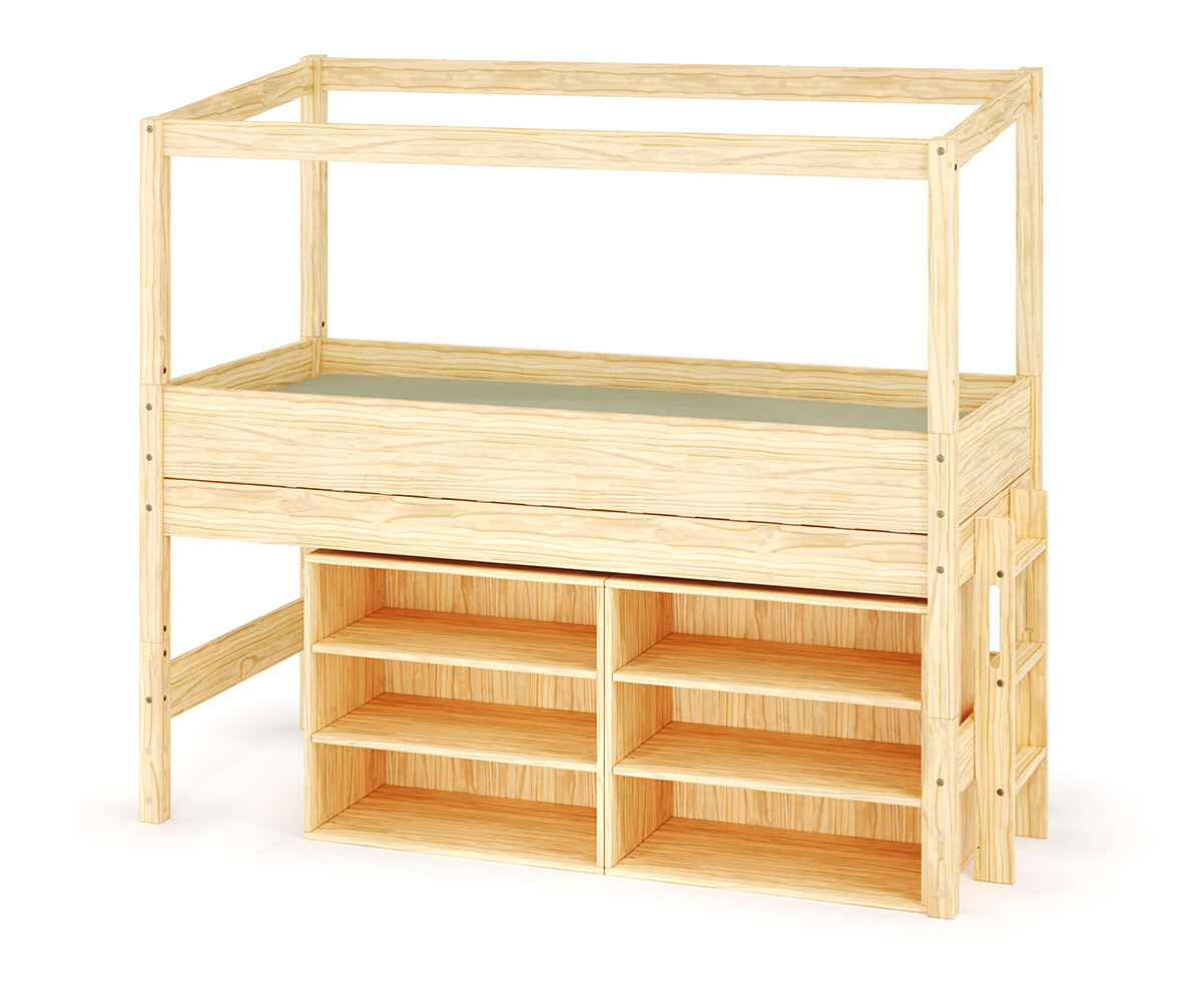Le lit cabane mi-hauteur avec rangements et matelas Combeebed se compose de :