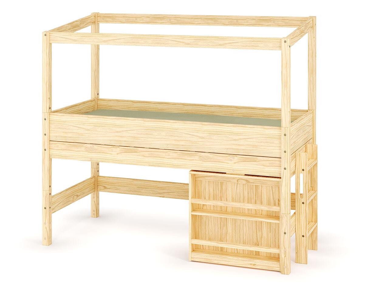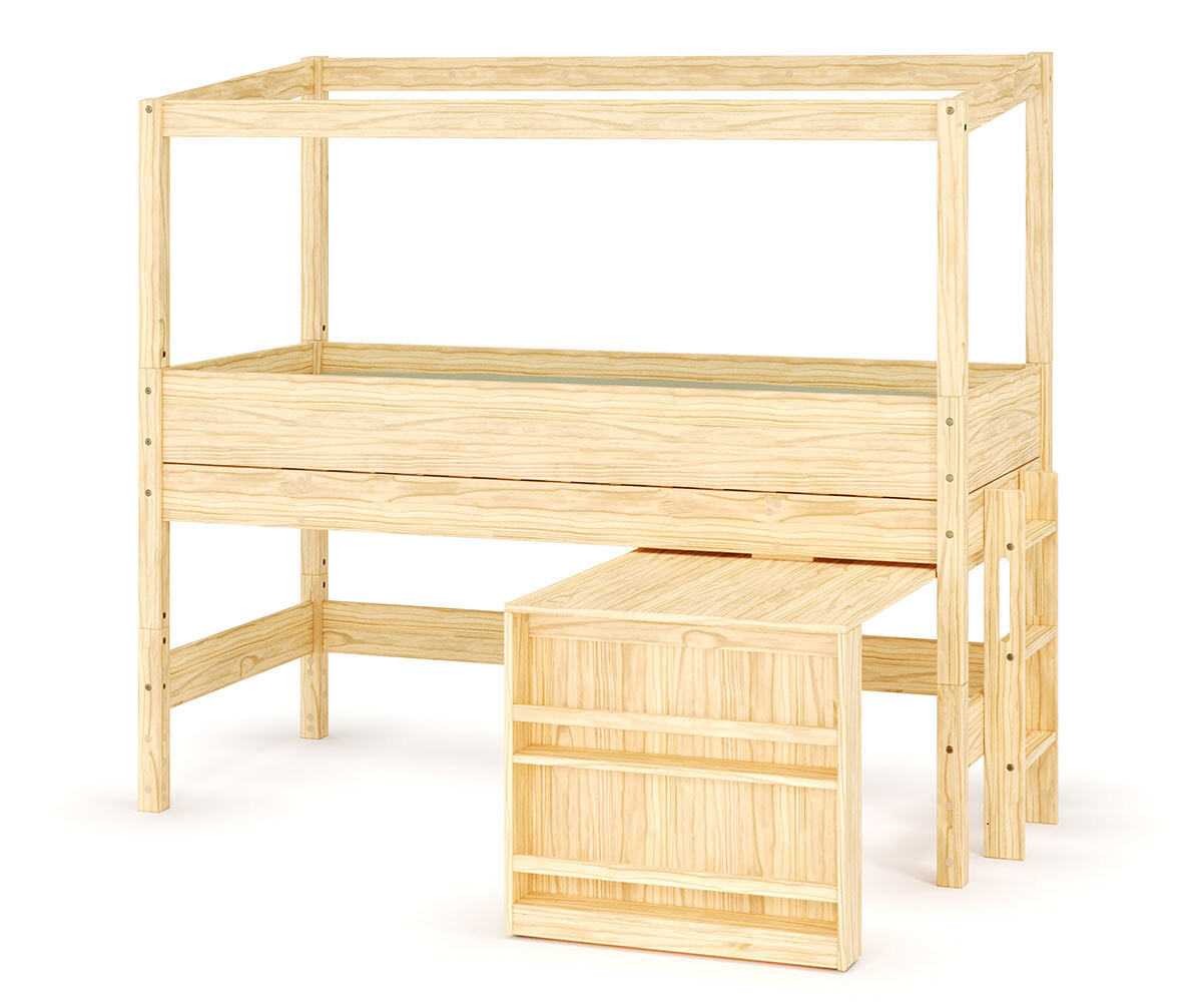 Le lit cabane mi-hauteur Combeebed avec bureau et matelas se compose de :