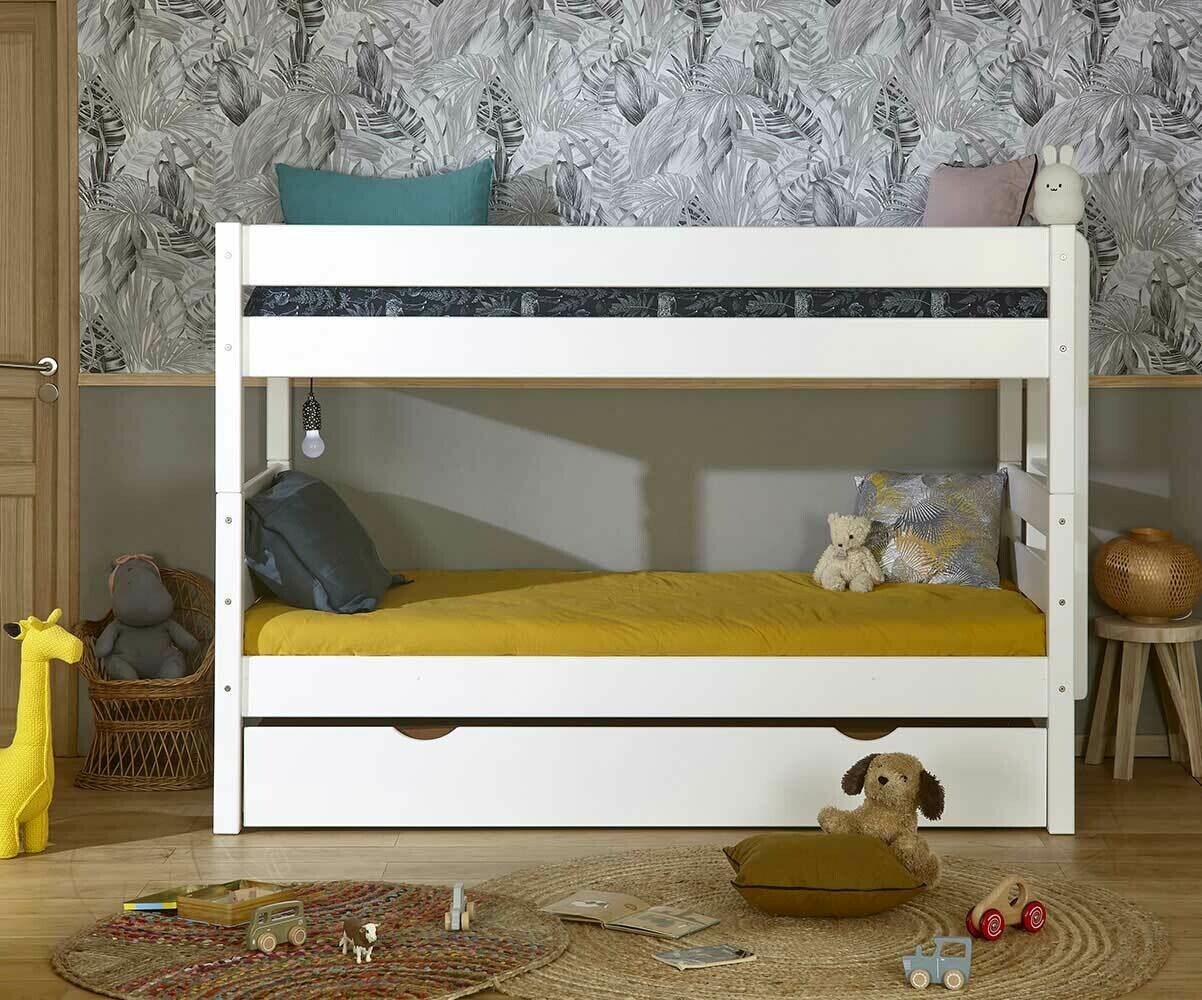 Pour optimiser l’espace dans une petite chambre d’enfant, on adore le lit enfant superposé, car il n’encombre pas les petites pièces. Vous allez apprécier le gain de place de ce lit superposé avec tiroir :