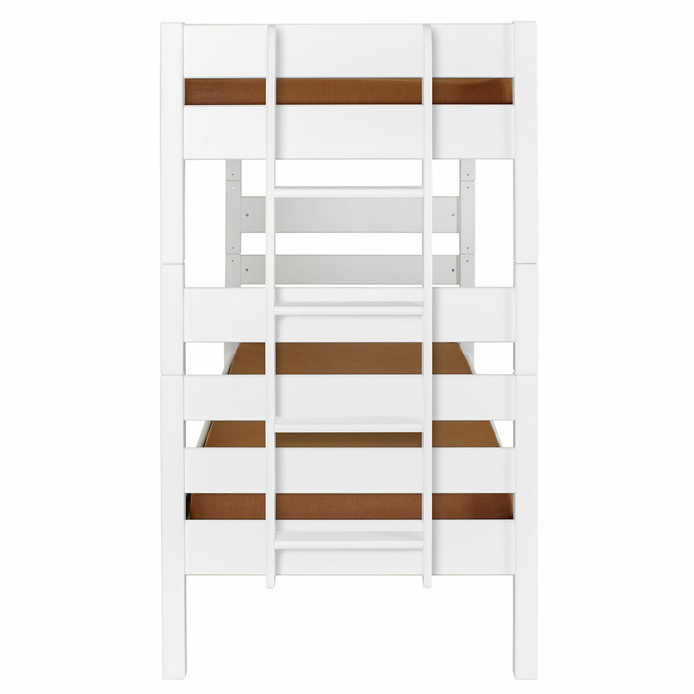 - Lorsque vos enfants ont grandi :Configurez les lits superposés en position haute, à l’aide de la rehausse de 29 cm. Vous obtenez ainsi un écart de 106,5 cm entre les deux couchages. Cette évolution assure le confort de l’enfant qui occupe le lit du bas.