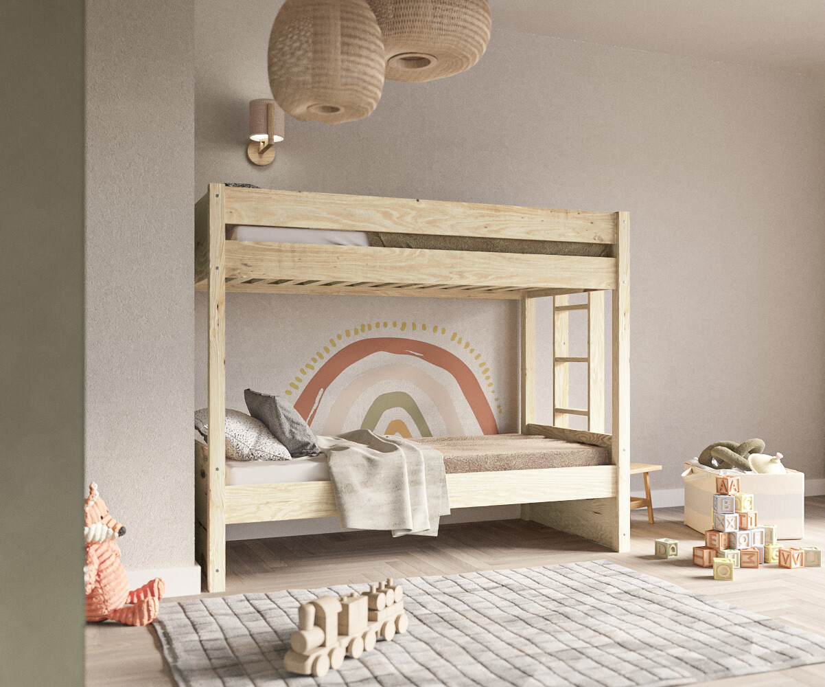 Le lit superposé Yudi avec matelas est une solution complète pour les chambres d'enfants, offrant un espace de couchage pratique, sécurisé et confortable. Fabriqué en bois massif, ce lit superposé est conçu pour répondre aux besoins de vos enfants tout en respectant l'environnement.