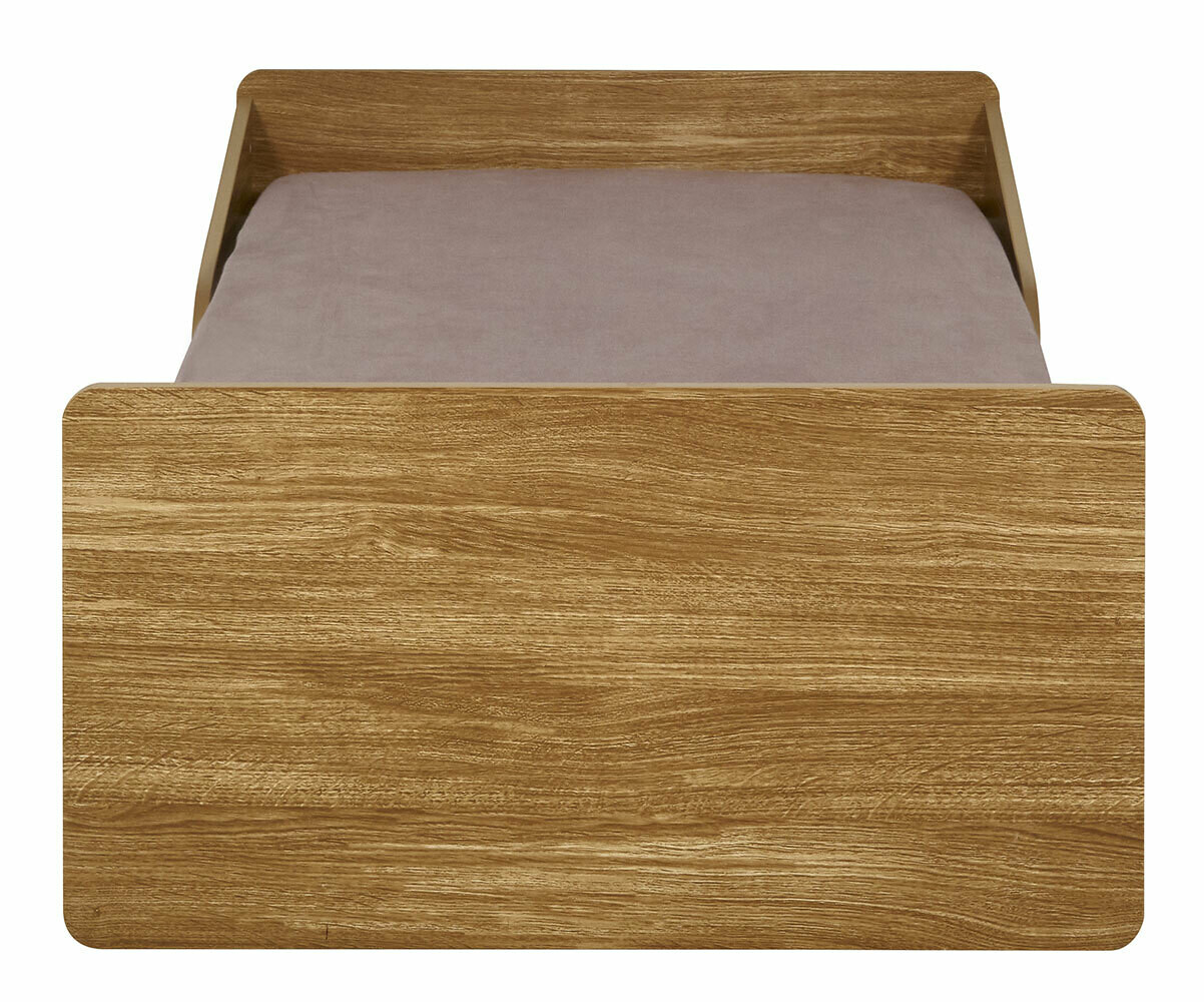 - un sommier à lattes en bois massif réglable sur 2 hauteurs : la hauteur la plus basse est située près du sol : le couchage au sol est une configuration idéale pour les plus jeunes. Elle assure leur sécurité et rassure également les parents, pour que toute la famille dorme paisiblement. En plus, la tête et le pied de lit disposent de grandes joues arrondies pour placer votre enfant dans un petit cocon douillet