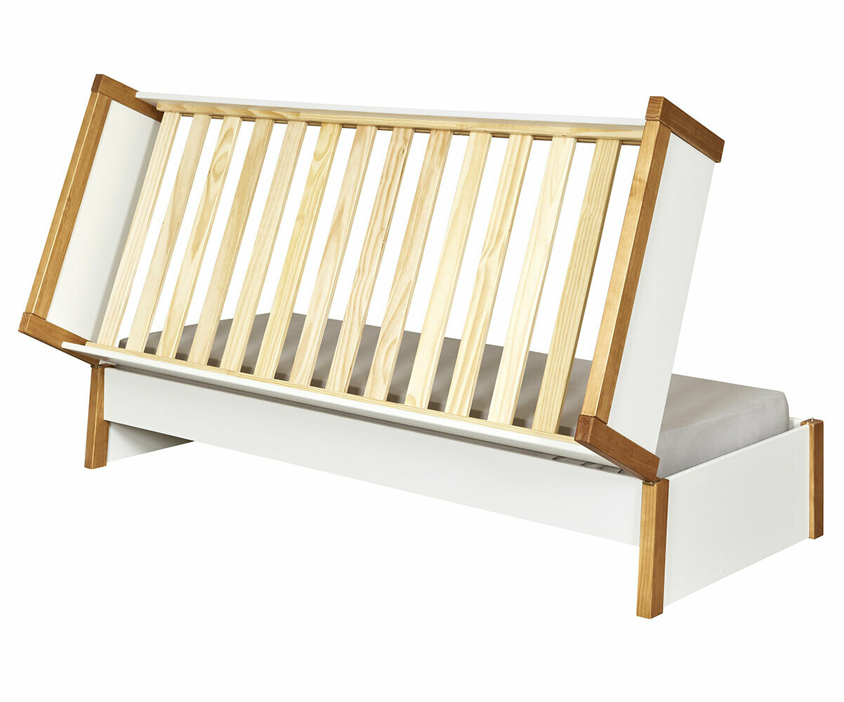 Le sommier est pensé pour offrir un confort ultime, avec 2 x 14 lattes en bois de pin massif, offrant un soutien solide pour un sommeil réparateur. Et grâce à ses charnières invisibles, l'ouverture du lit banquette en lit double se fait en un clin d'œil, tandis que sa fermeture est sécurisée par un taquet métallique pour une tranquillité d'esprit totale.