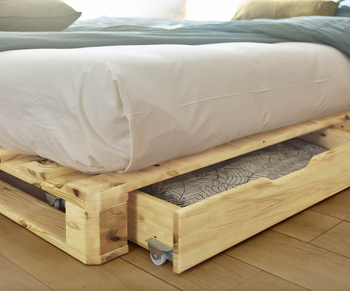 - un lit ado Aro inspiré du style palette. Il s'agit d'un couchage 2 places au design moderne, plébiscité par les ados et par les parents ! Il est de plus fonctionnel, grâce à ses 2 ou 4 tiroirs de rangement intégrés. Jeux, vêtements, linge de lit, magazines, livres : les tiroirs de rangement peuvent accueillir de nombreux effets personnels. Simples d'utilisation, les tiroirs sont munis de roulettes et de passe-mains. Ils optimisent ainsi l'espace dans la chambre de votre ado, en leur offrant une solution de rangement sans occuper d'espace supplémentaire au sol.
