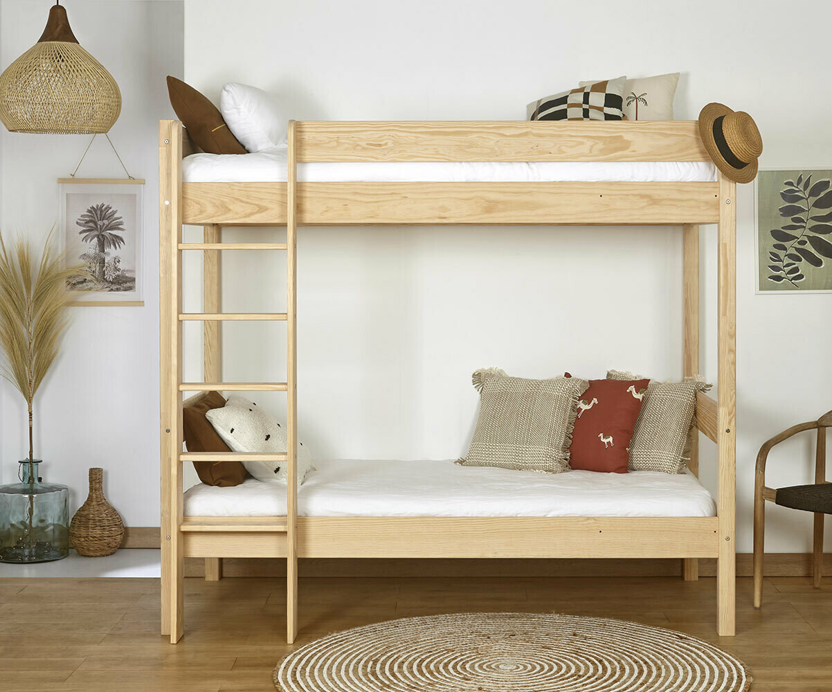 Pensé pour le confort, la déco et les petits espaces, le lit superposé adulte représente un véritable cocon douillet et un élément phare pour votre aménagement intérieur. Conçu dans un design intemporel et avec du bois massif, ce lit gain de place apporte du cachet et de la fonctionnalité à votre chambre.