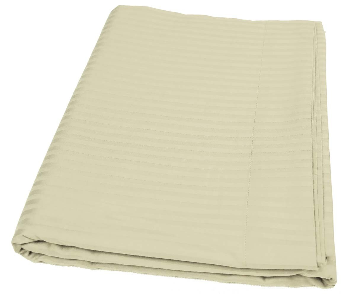 Un drap plat pour couchage double, en coton de satin, avec rayures