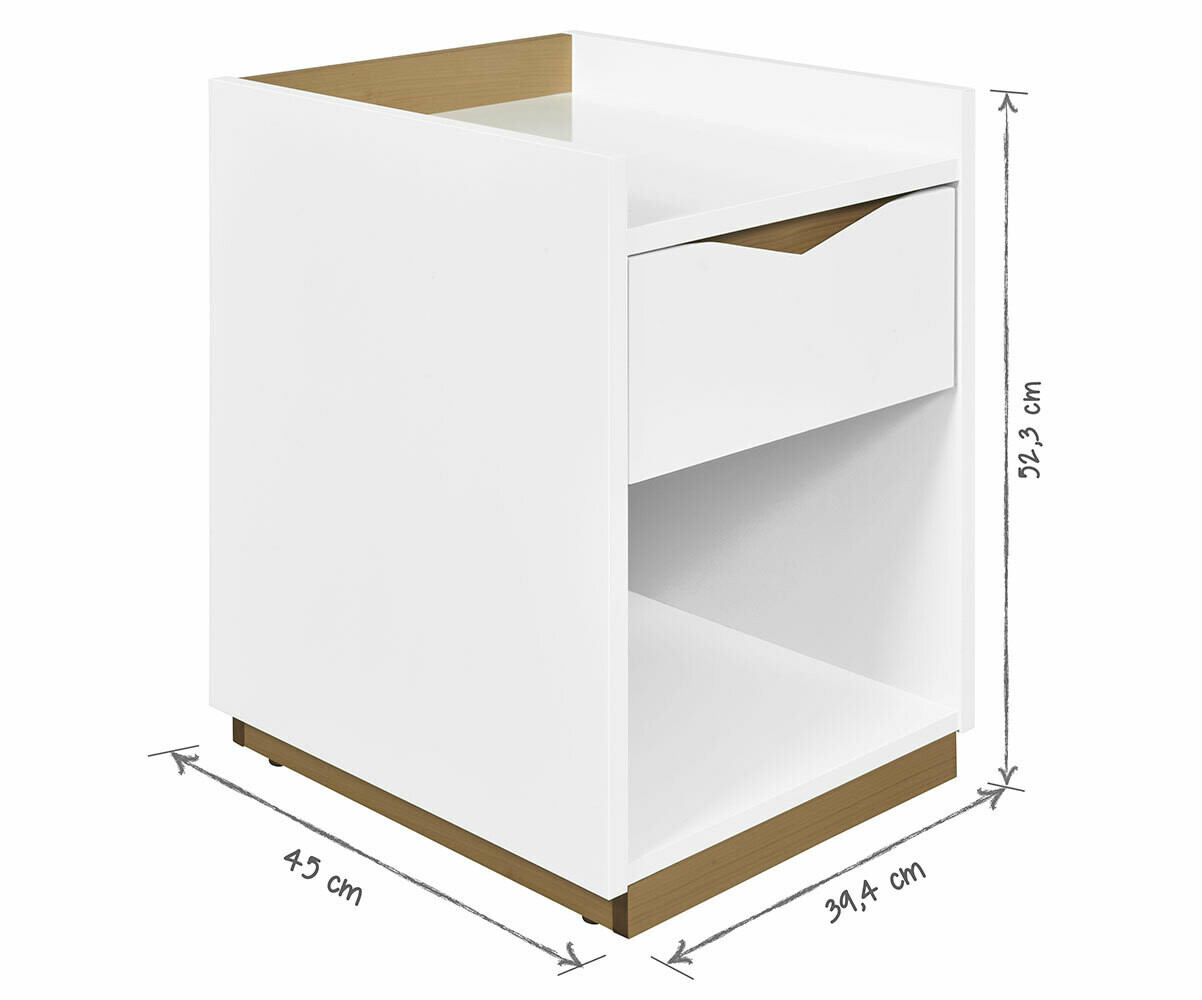 Imaginée et dessinée par Ma Chambre d’Enfant, la table de chevet est un mobilier exclusif. La fabrication quant à elle se fait dans notre usine partenaire en Amérique Latine avec des panneaux de fibres de bois décor blanc et bois couleur noisette.